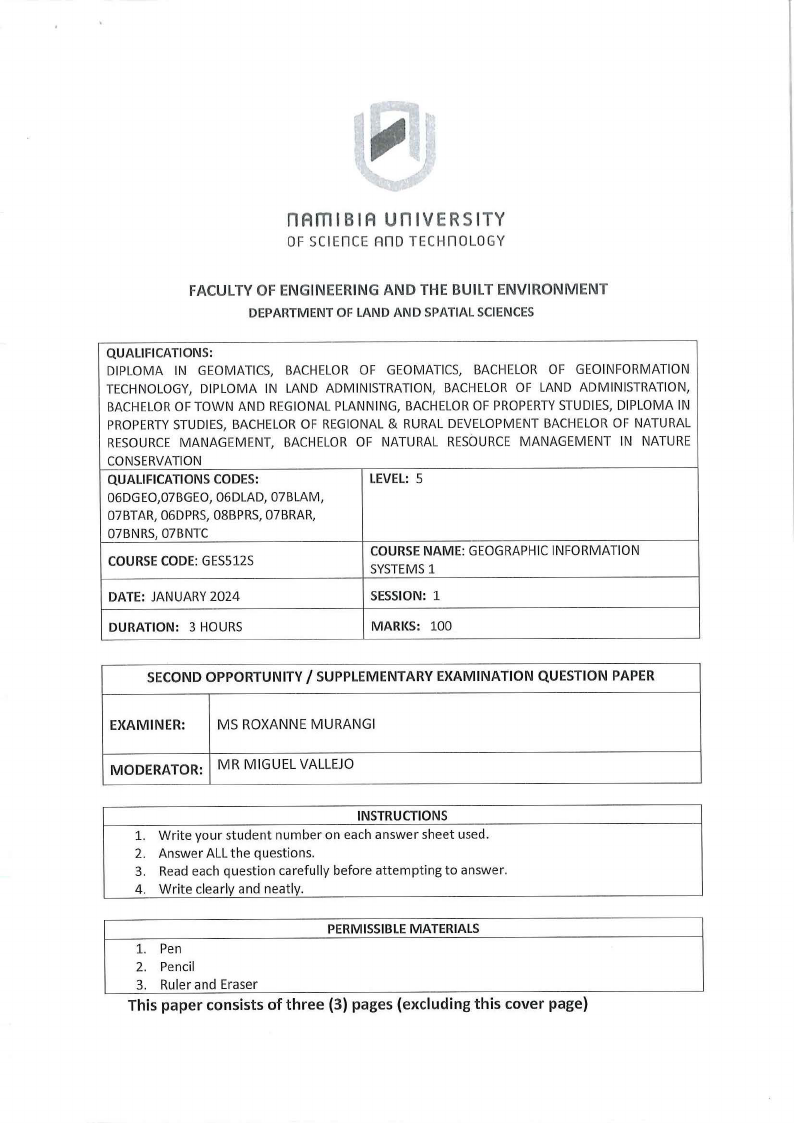SECOND OPPORTUNITY/ SUPPLEMENTARY EXAMINATION QUESTION PAPER