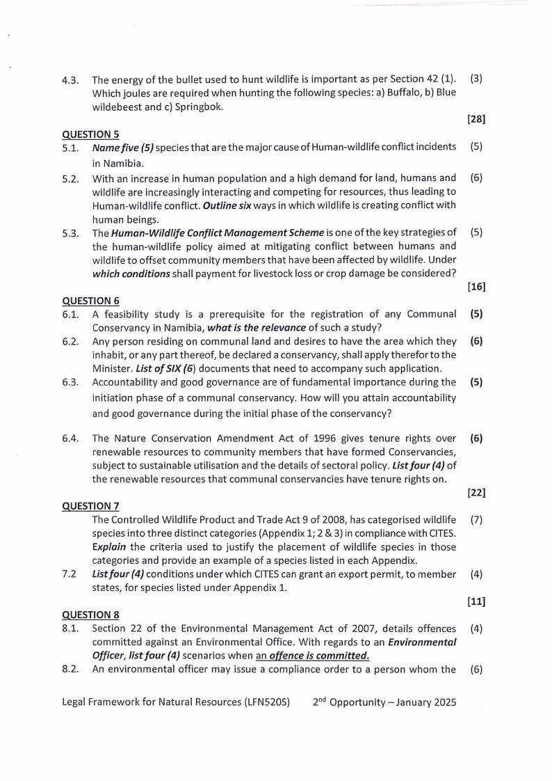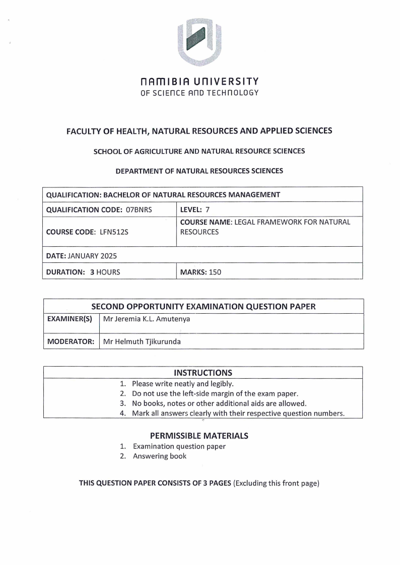 Legal Framework for Natural Resources {LFN520S) 2nd Opportunity-January 2025