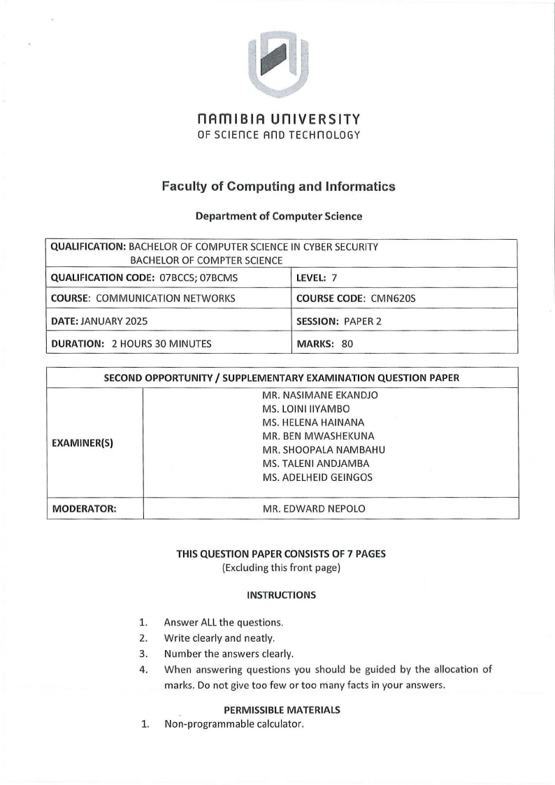 CMN620S - COMMUNICATION NETWORKS - 2ND OPP - JAN 2025 |