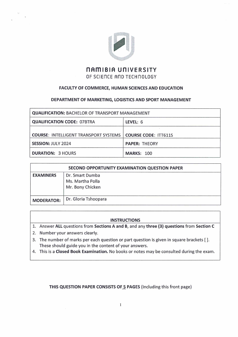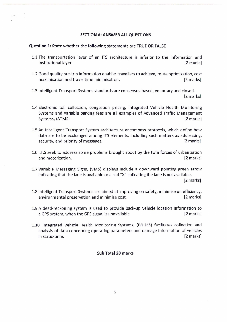 1.8 Intelligent Transport Systems are aimed at improving on safety, minimise on efficiency,