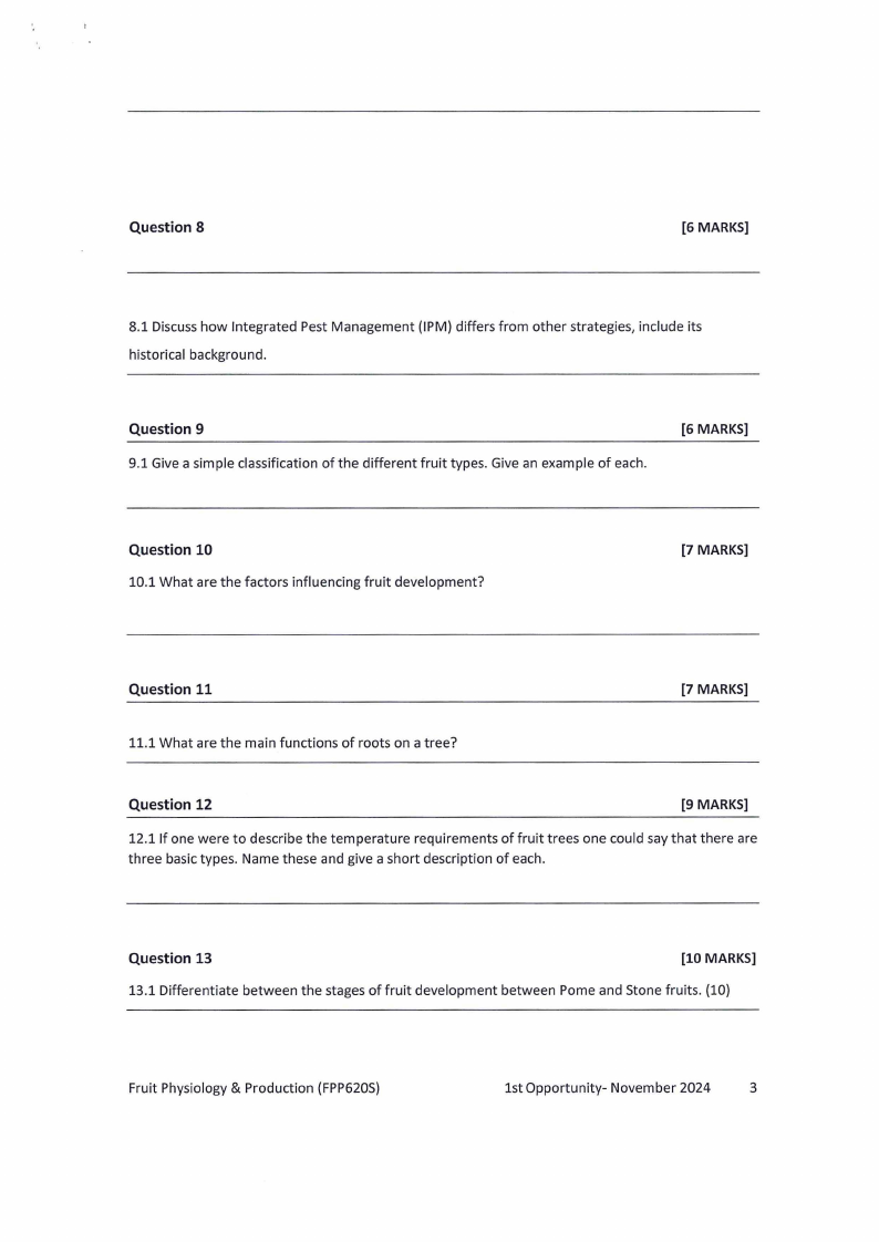 FPP620S - FRUIT PHYSIOLOGY AND PROCUCTION - 1ST OPP - NOV 2024 |