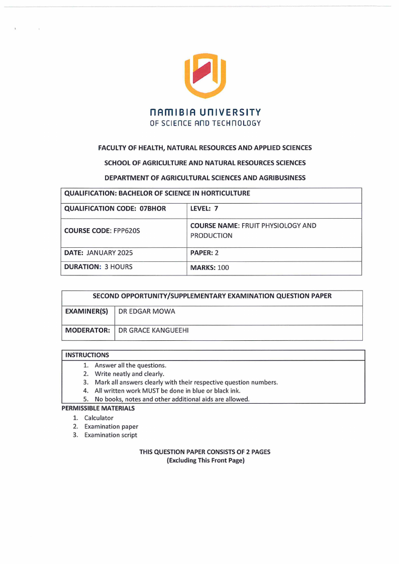 COURSE NAME: FRUIT PHYSIOLOGYAND