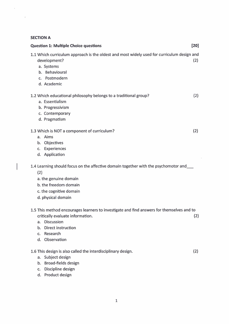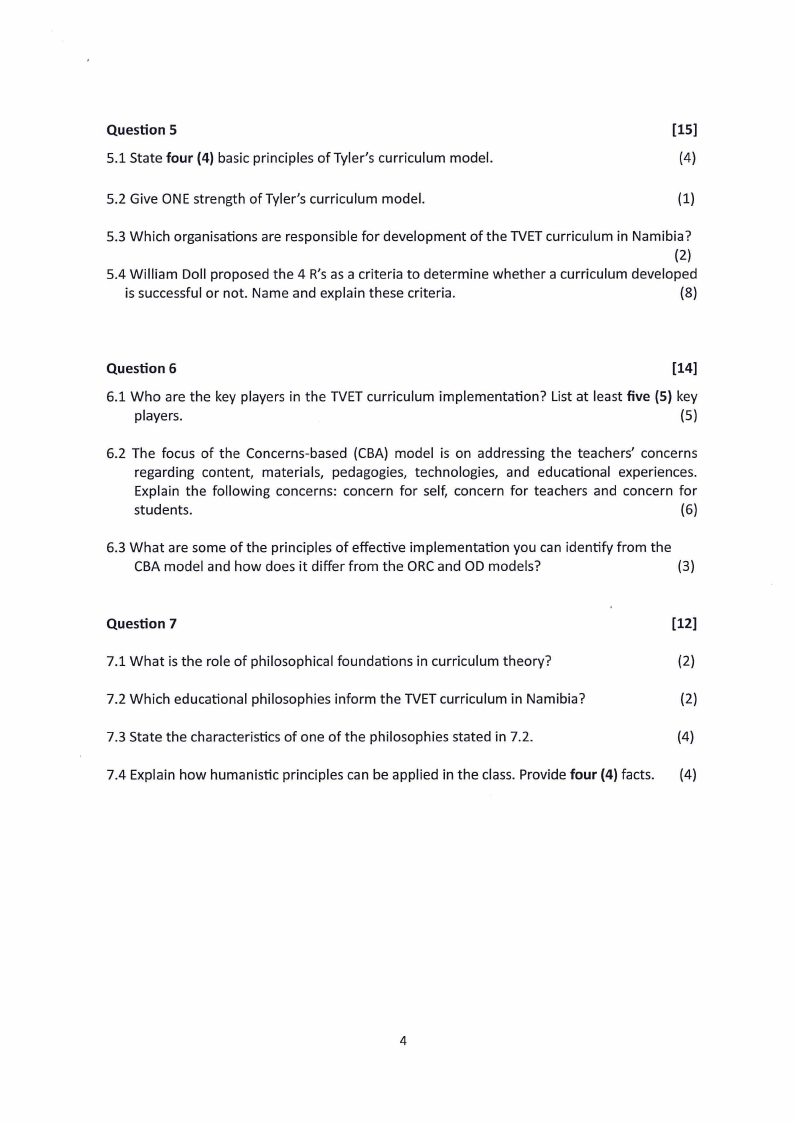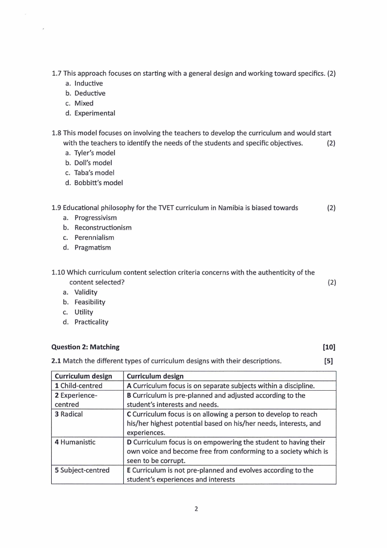 3.3 The curriculum development model used in Namibia applies the principles of Bobbitt and