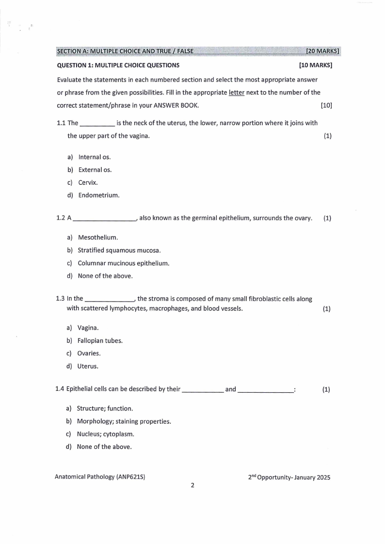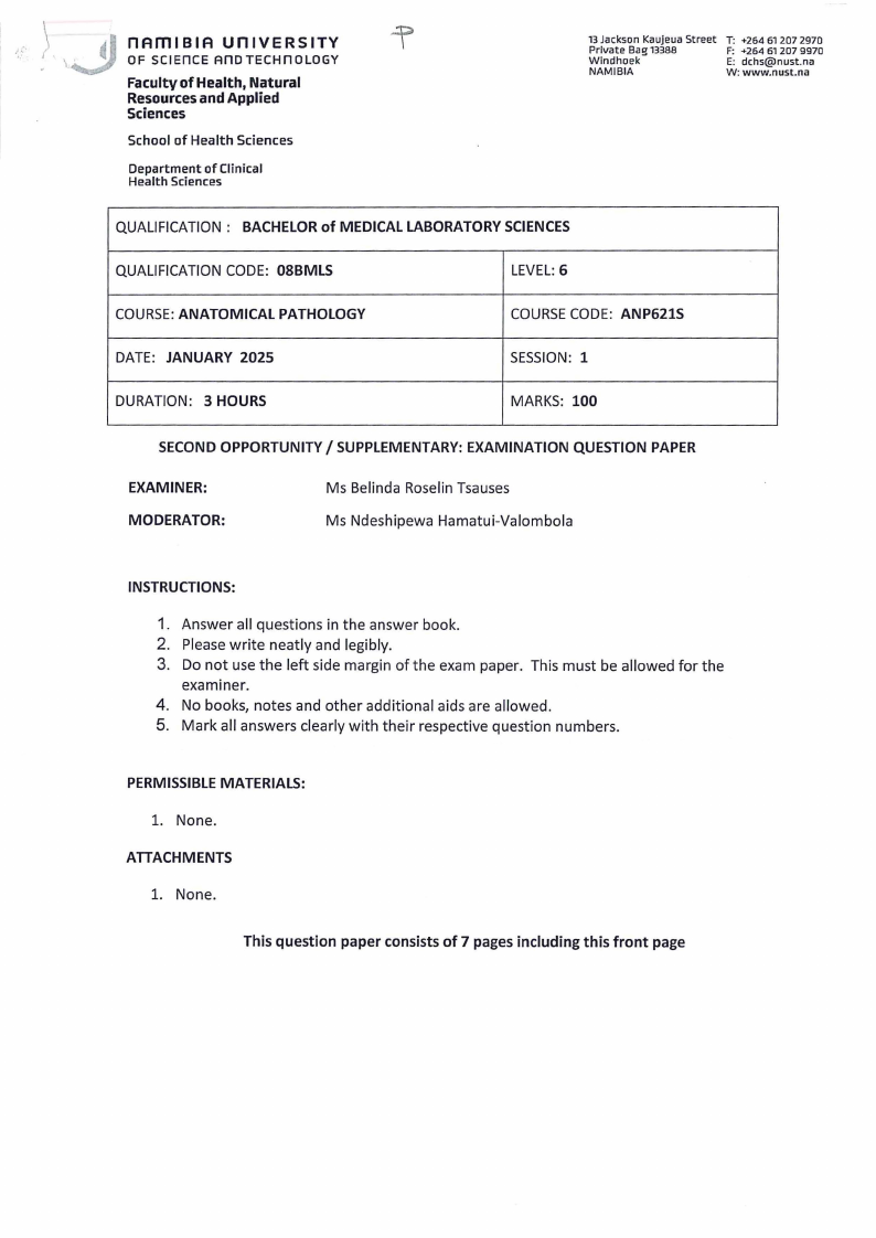 ANP621S - ANATOMICAL PATHOLOGY - 2ND OPP - JANUARY 2025 |