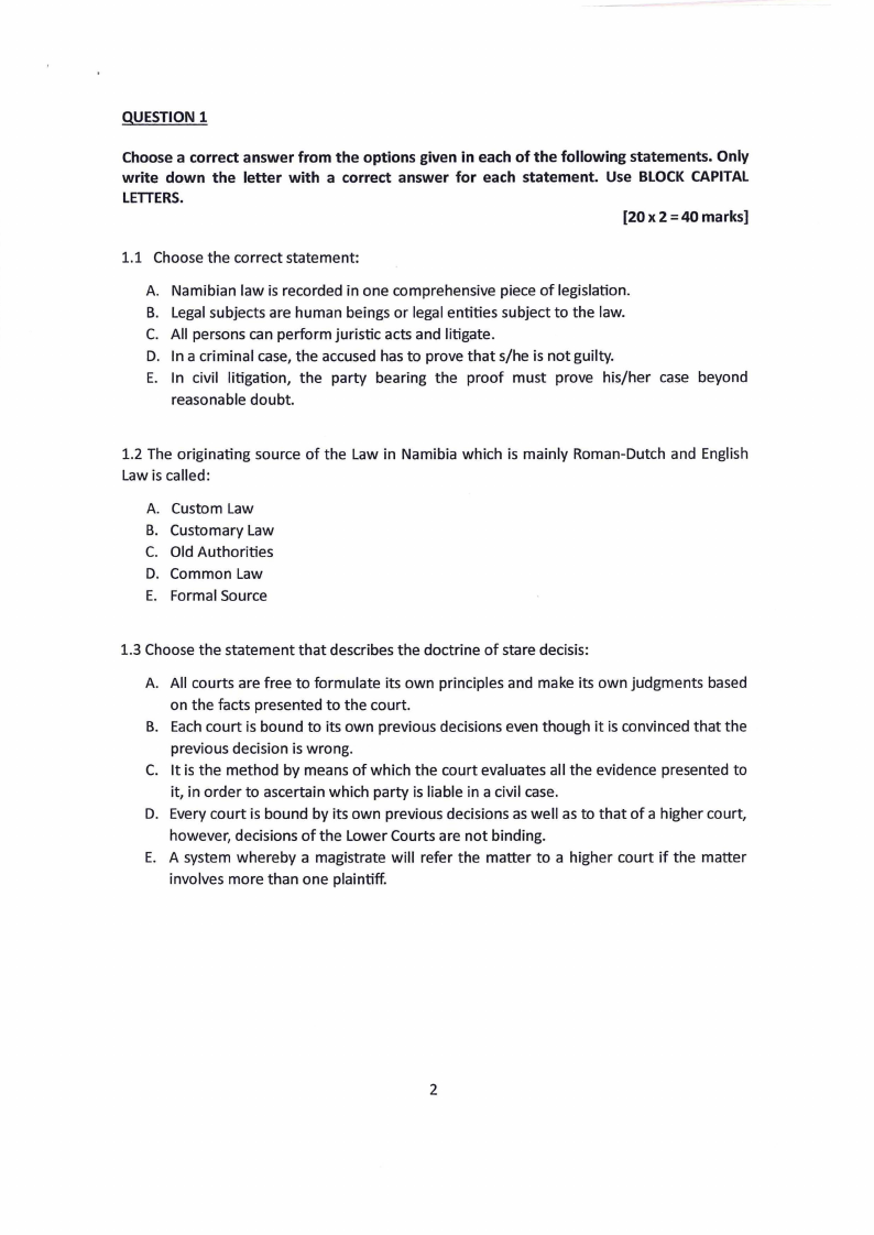 1.3 Choose the statement that describes the doctrine of stare decisis: