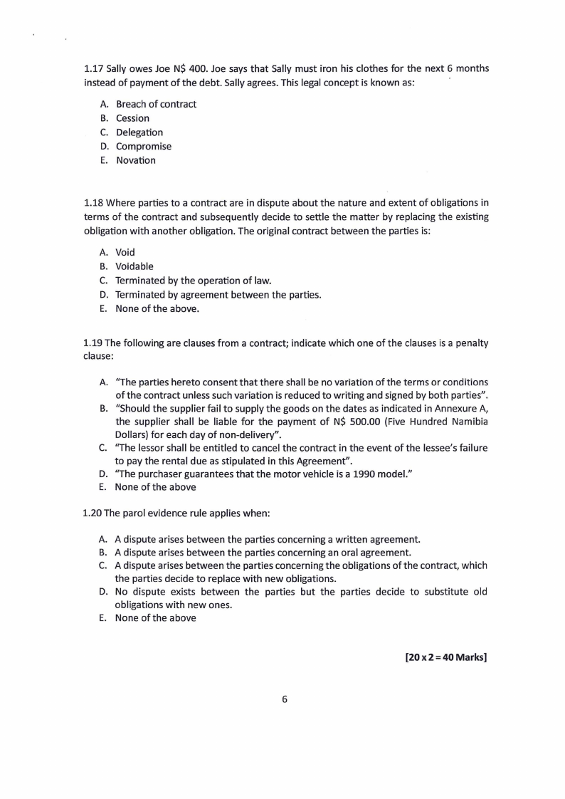 1.19 The following are clauses from a contract; indicate which one of the clauses is a penalty