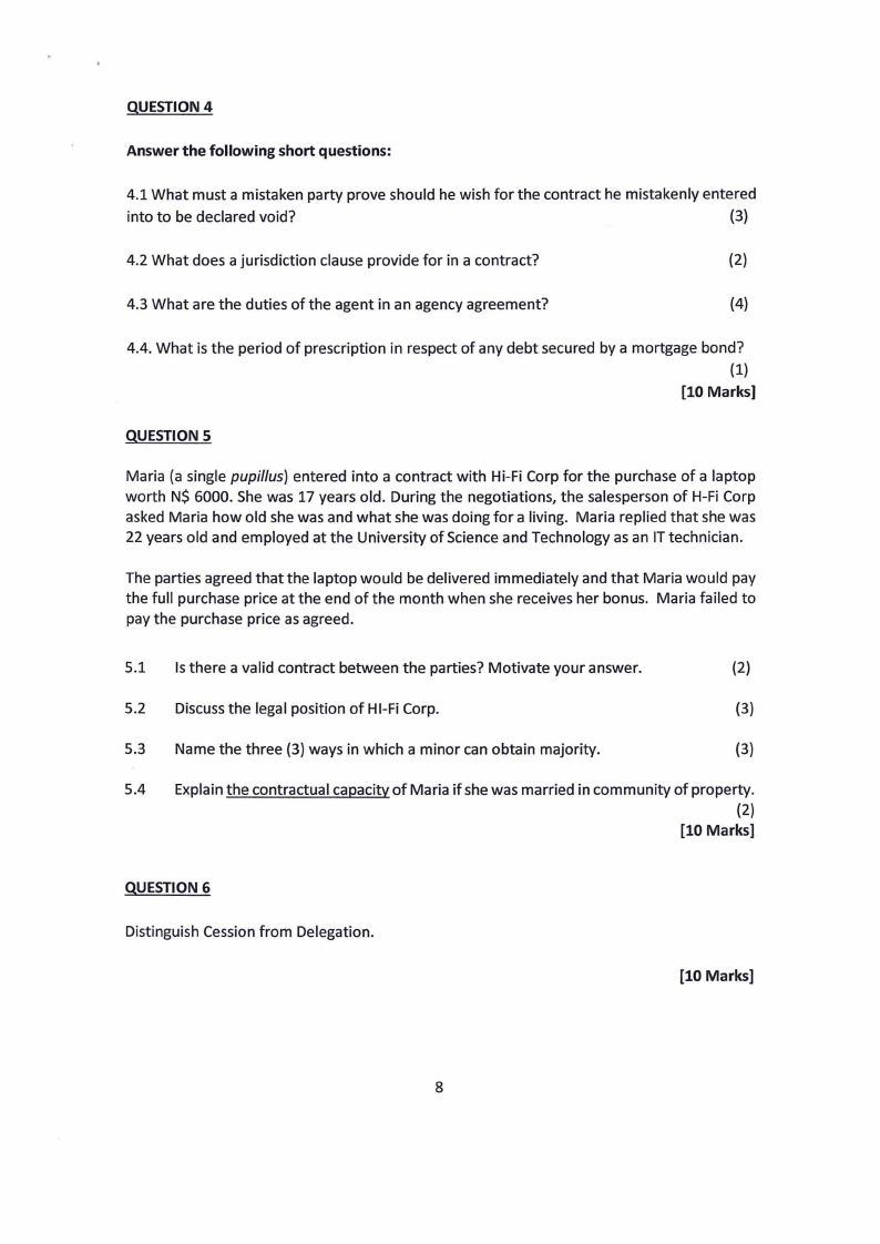 5.4 Explain the contractual capacity of Maria if she was married in community of property.