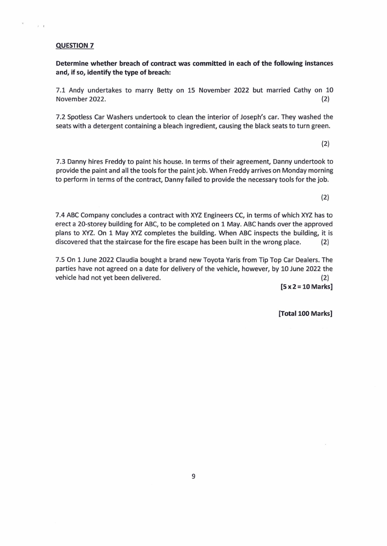 7.3 Danny hires Freddy to paint his house. In terms of their agreement, Danny undertook to