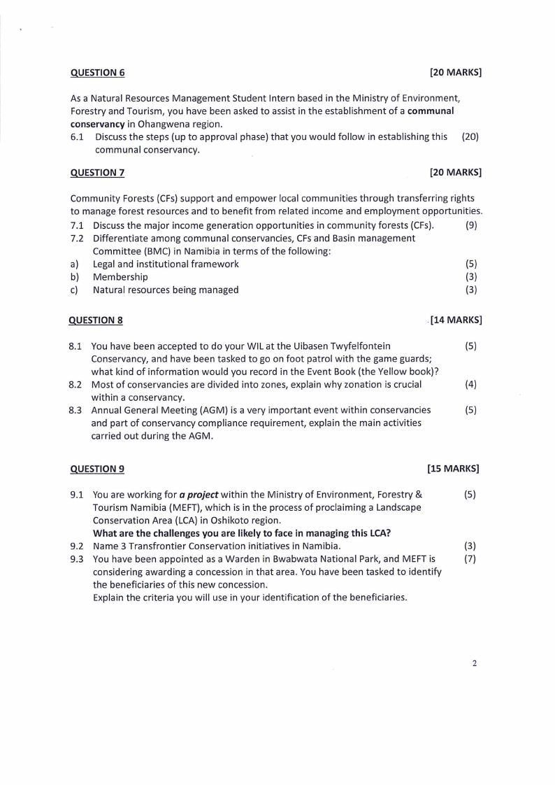 9.3 You have been appointed as a Warden in Bwabwata National Park, and MEFT is