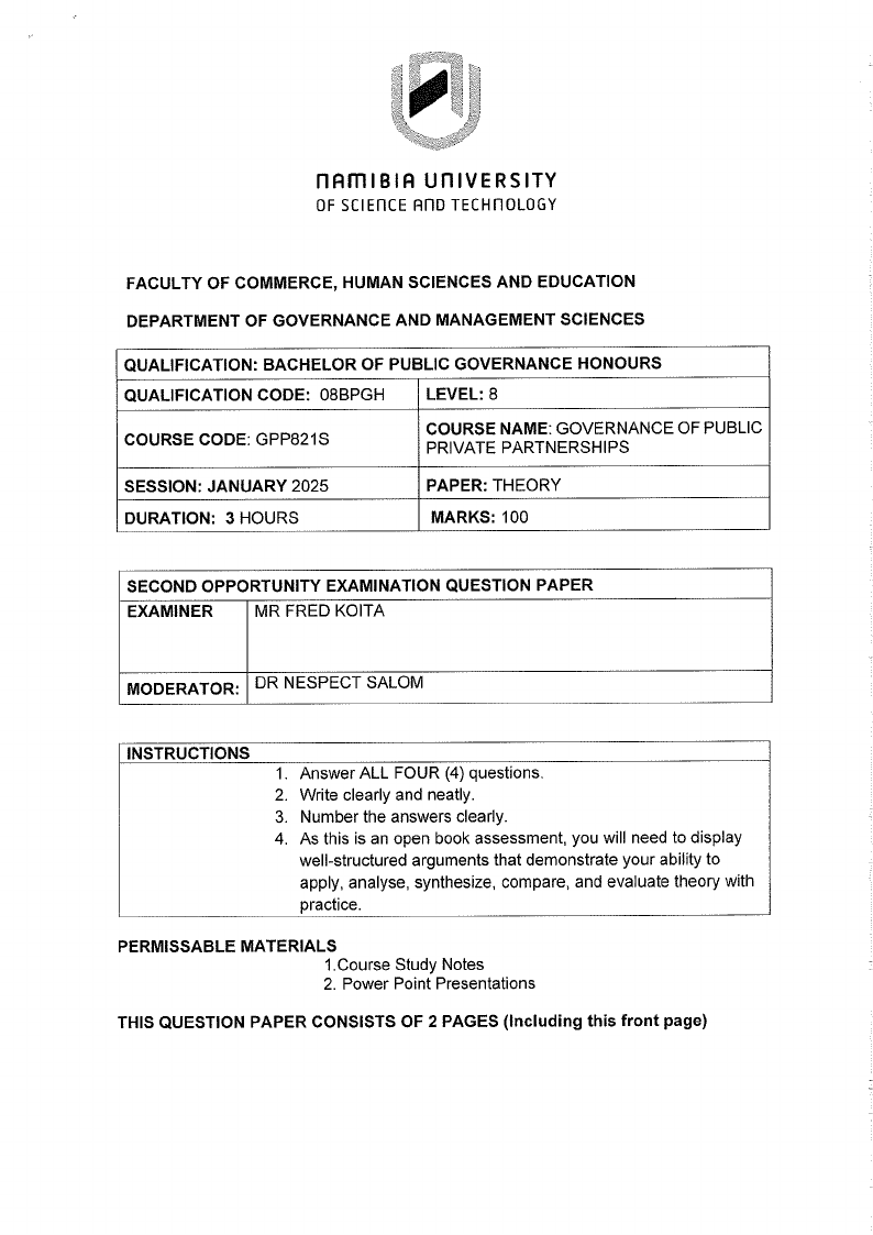 to the Kavango West Regional Council in which you discuss the definition of a PPP with