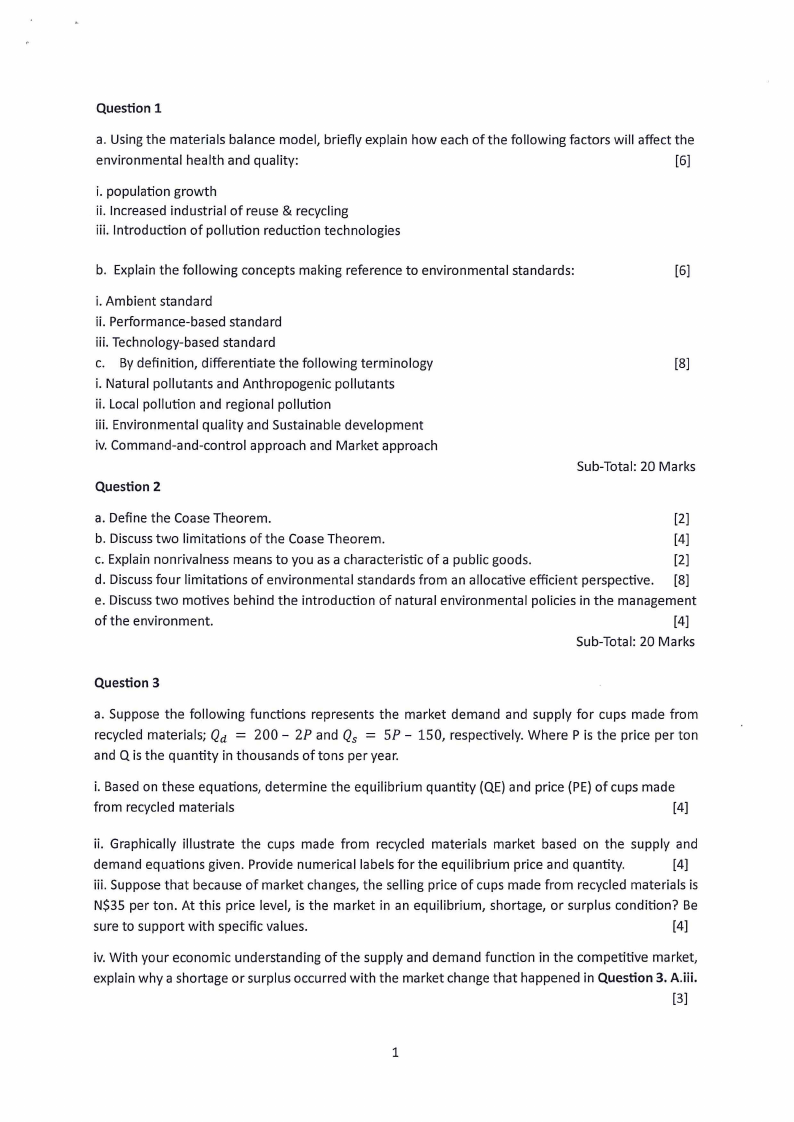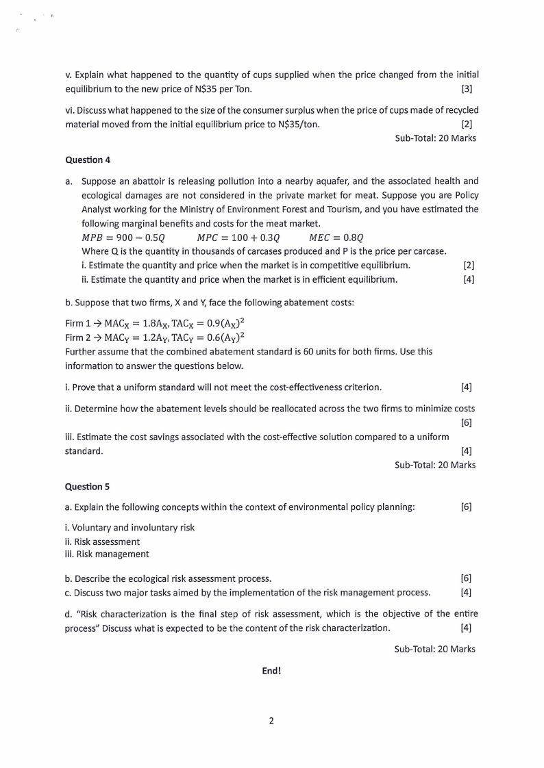 d. Discussfour limitations of environmental standards from an allocative efficient perspective. [8]