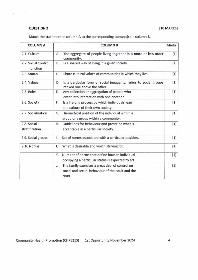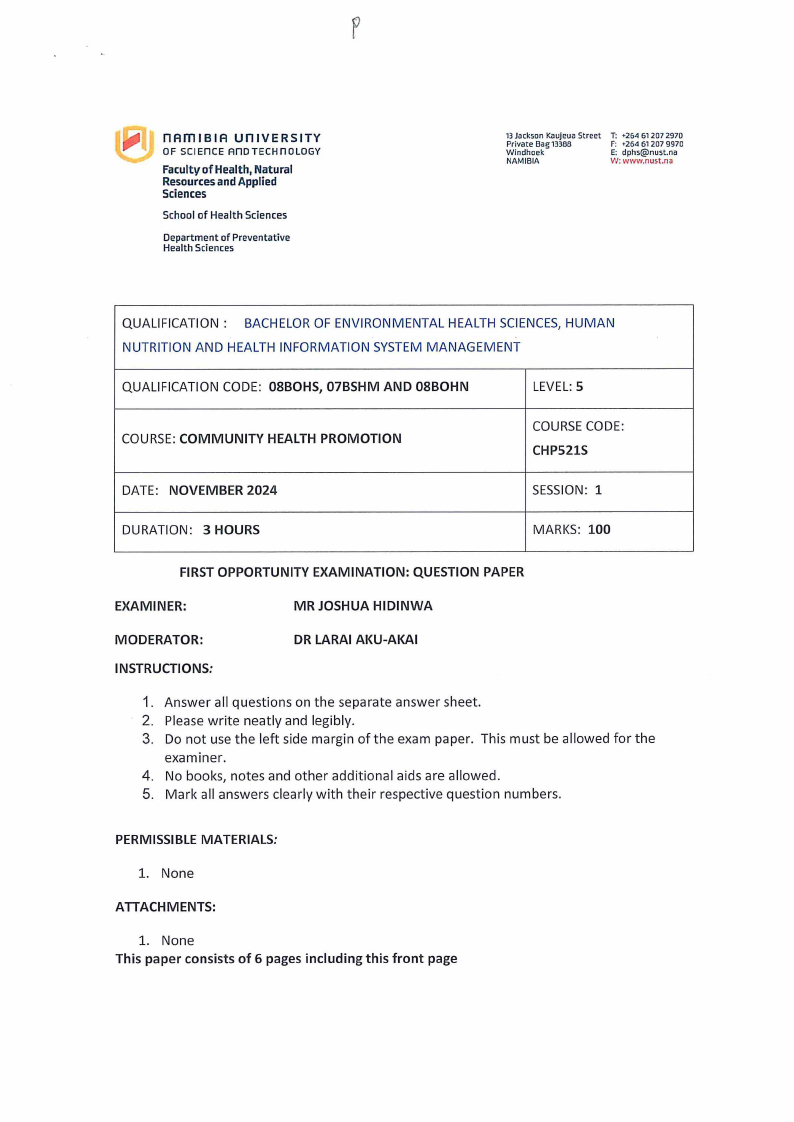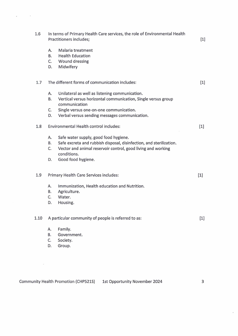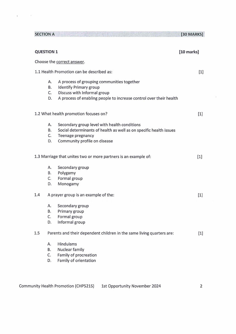 CHP521S - COMMUNITY HEALTH PROMOTION - 1ST OPP - NOVEMBER 2024 |