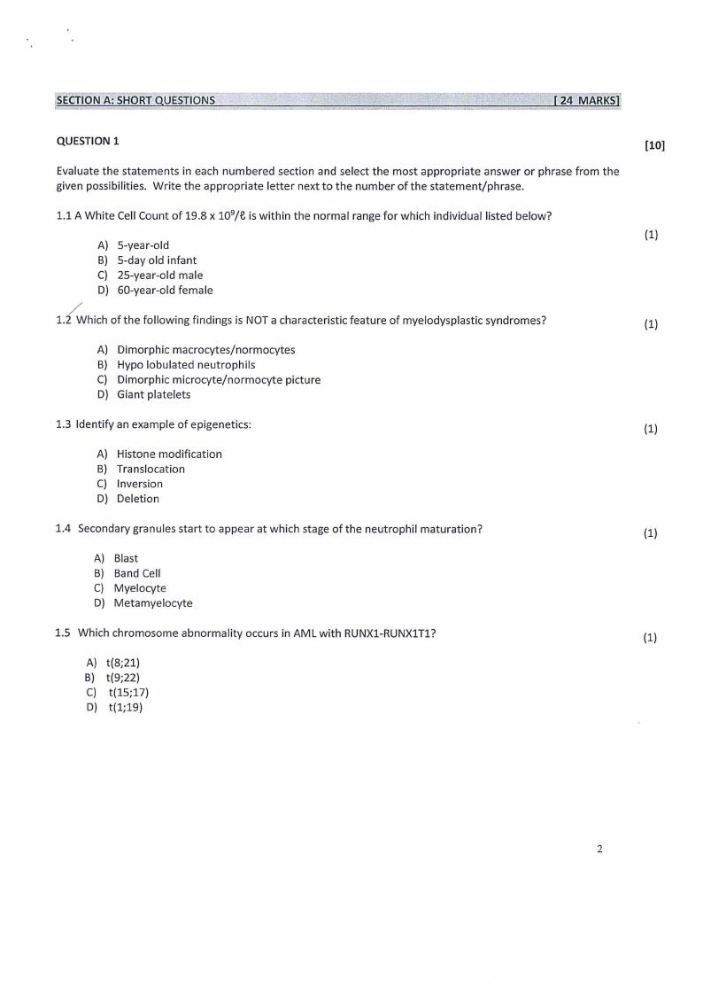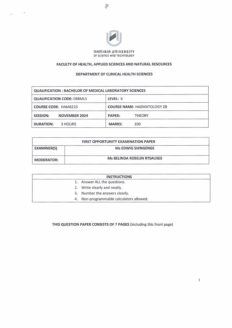 HAM621S - HAEMATOLOGY 2B - 1ST OPP - NOVEMBER 2024 |