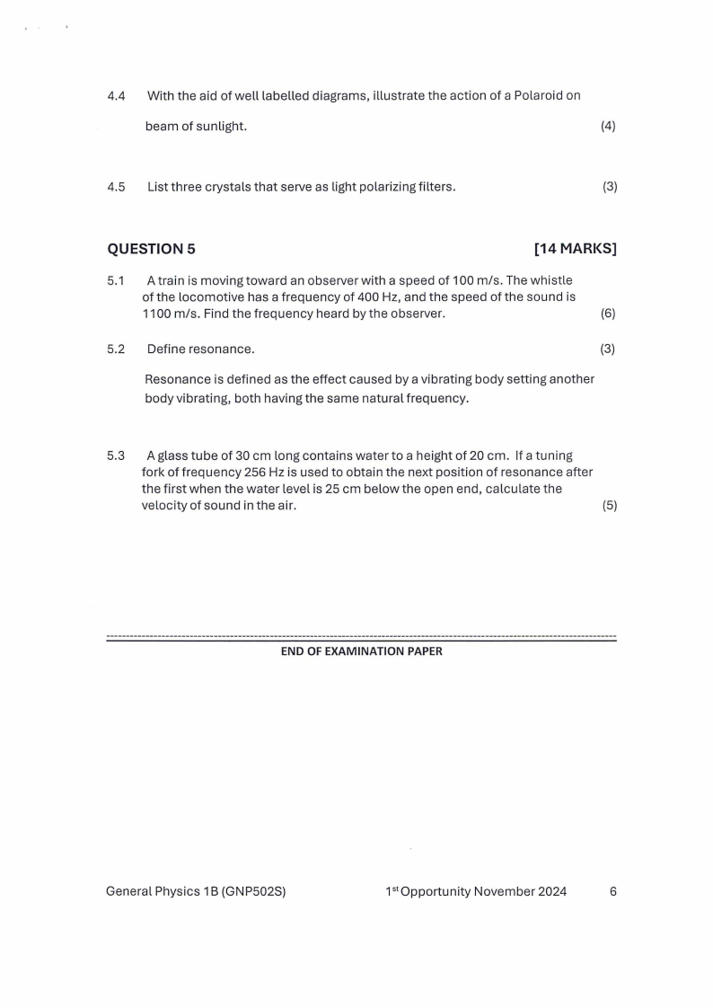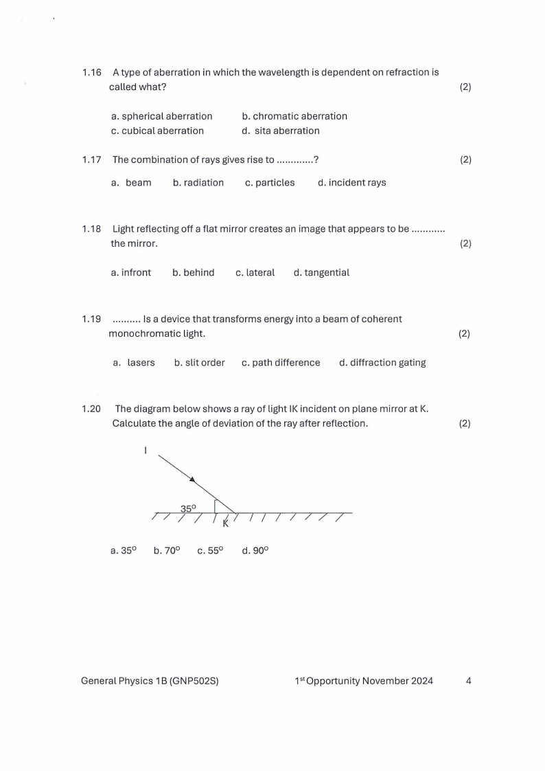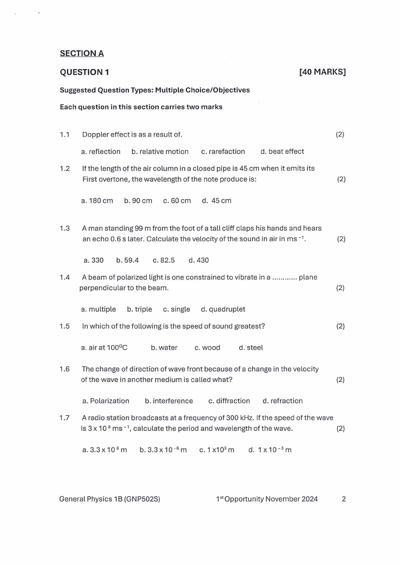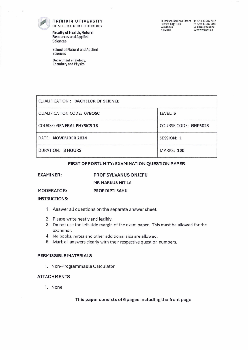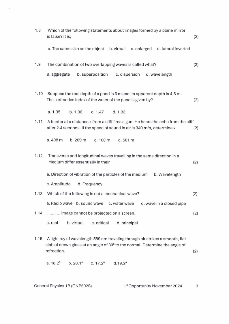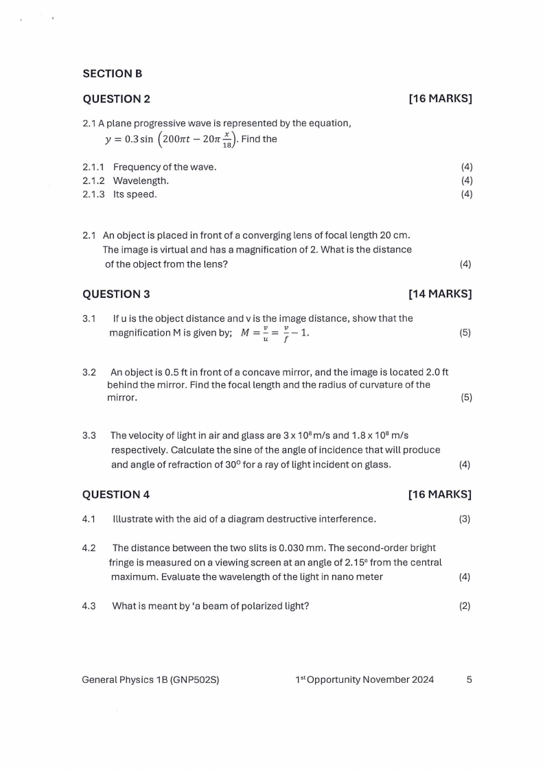 GNP502S - GENERAL PHYSICS 1B - 1ST OPP - NOVEMBER 2024 |