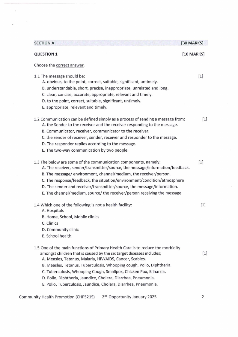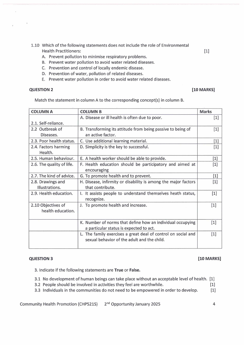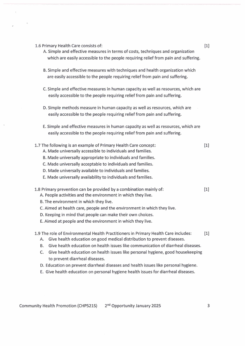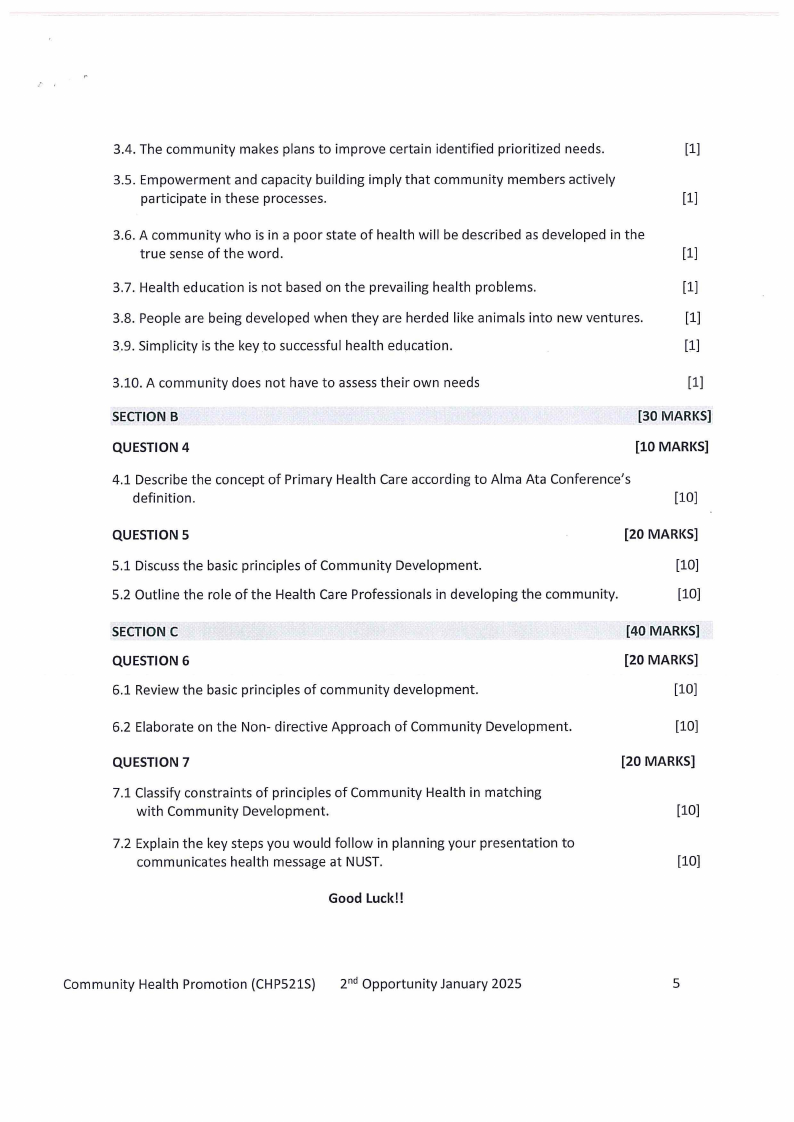 Community Health Promotion (CHP521S) 2nd Opportunity January 2025