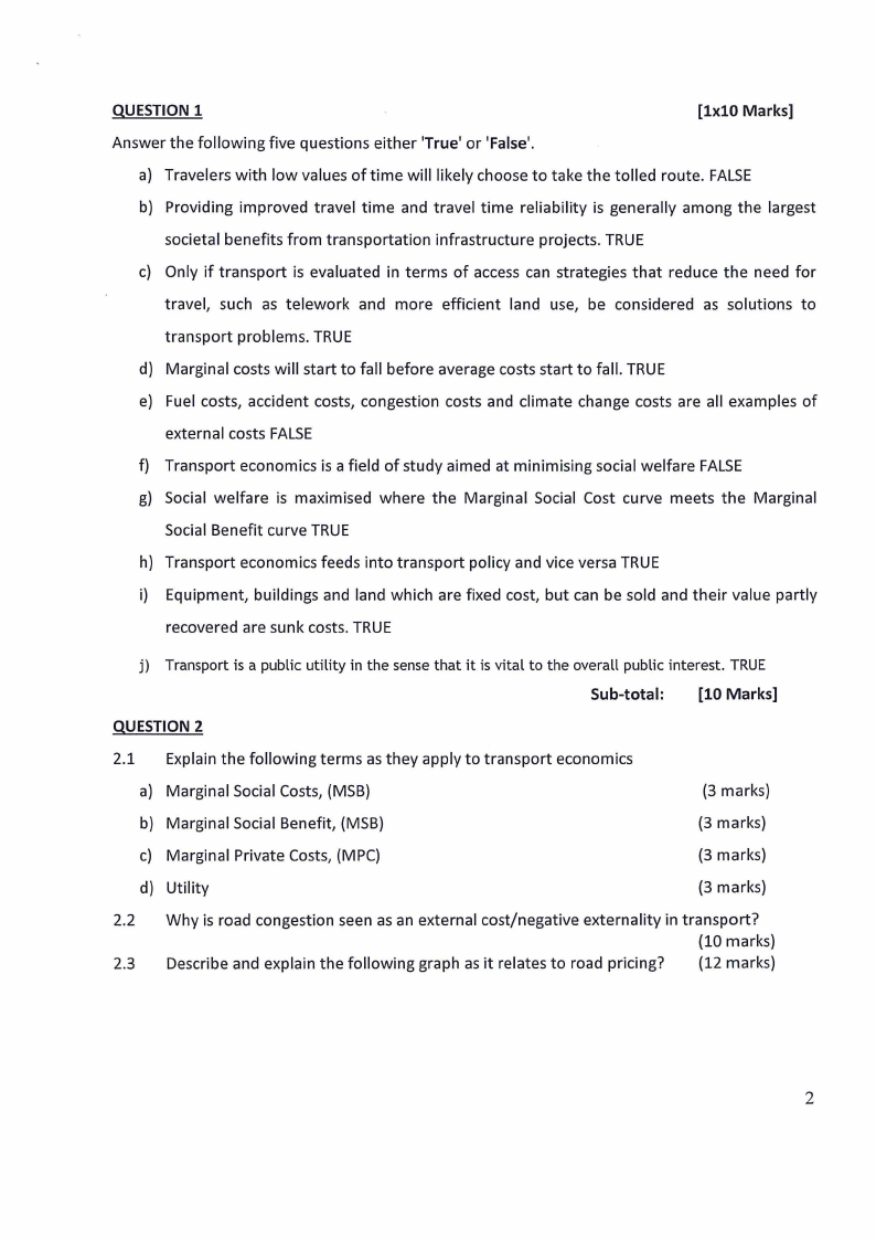 2.3 Describe and explain the following graph as it relates to road pricing? (12 marks)