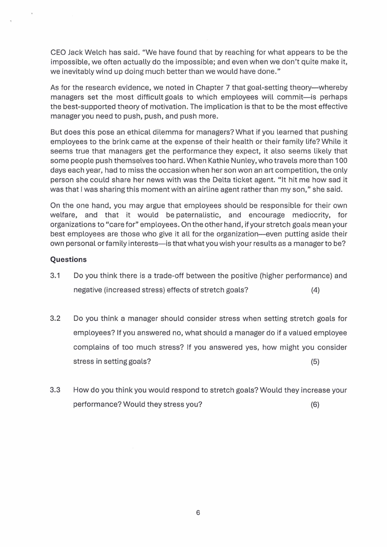 3.2 Do you think a manager should consider stress when setting stretch goals for