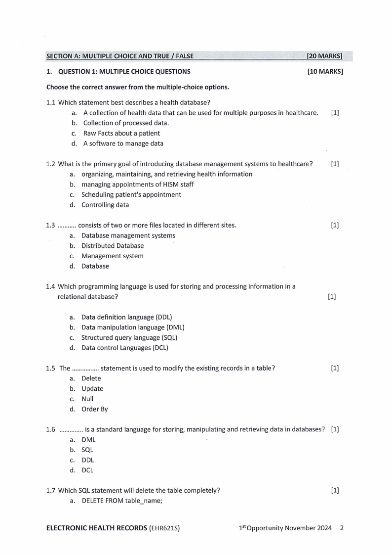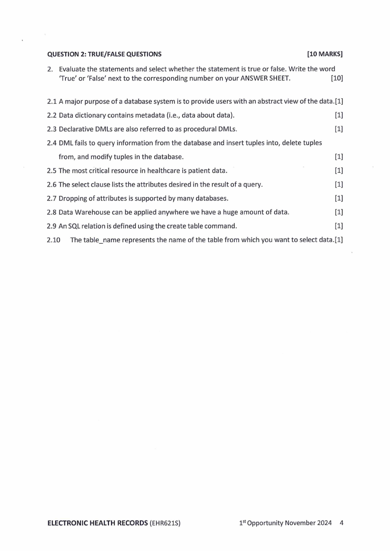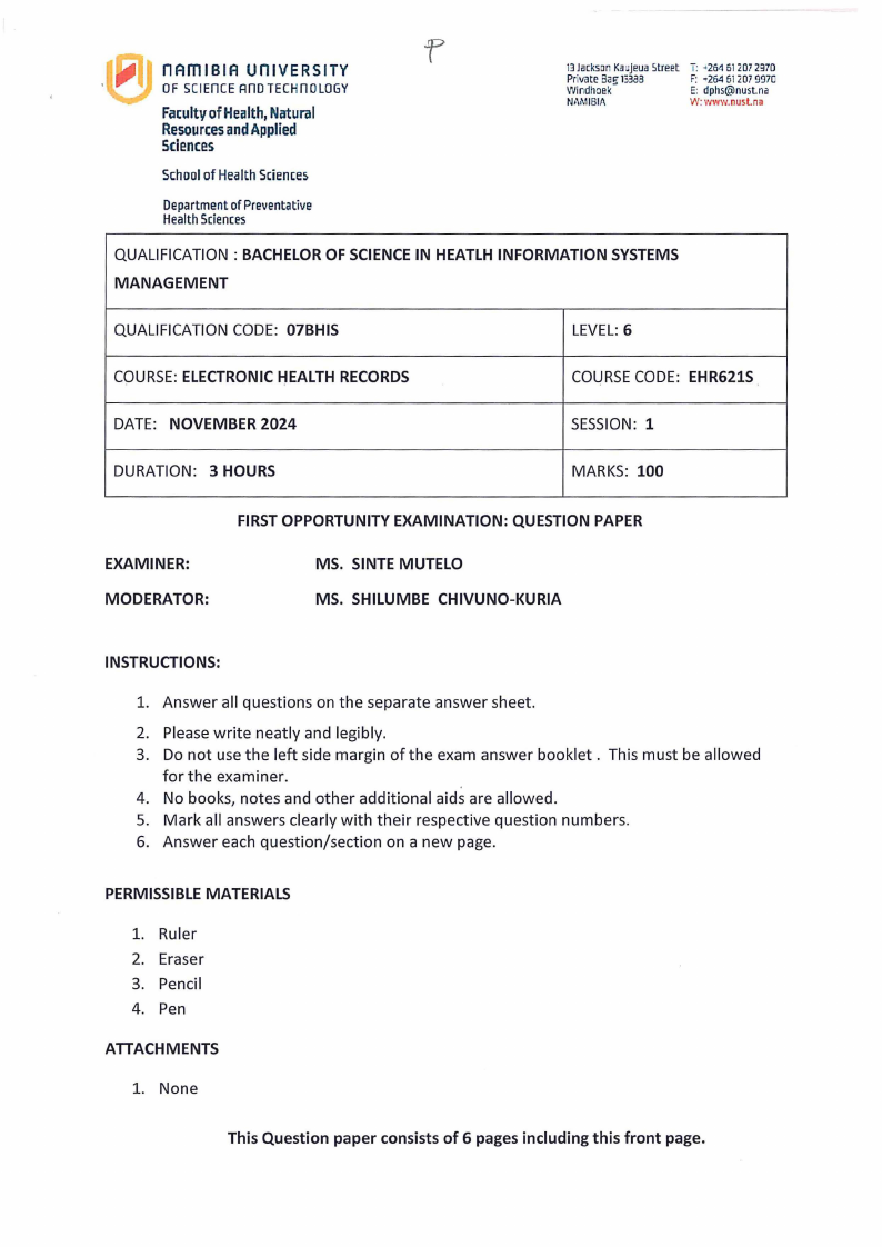 EHR621S - ELECTRONIC HEALTH RECORDS - 1ST OPP - NOVEMBER 2024 |