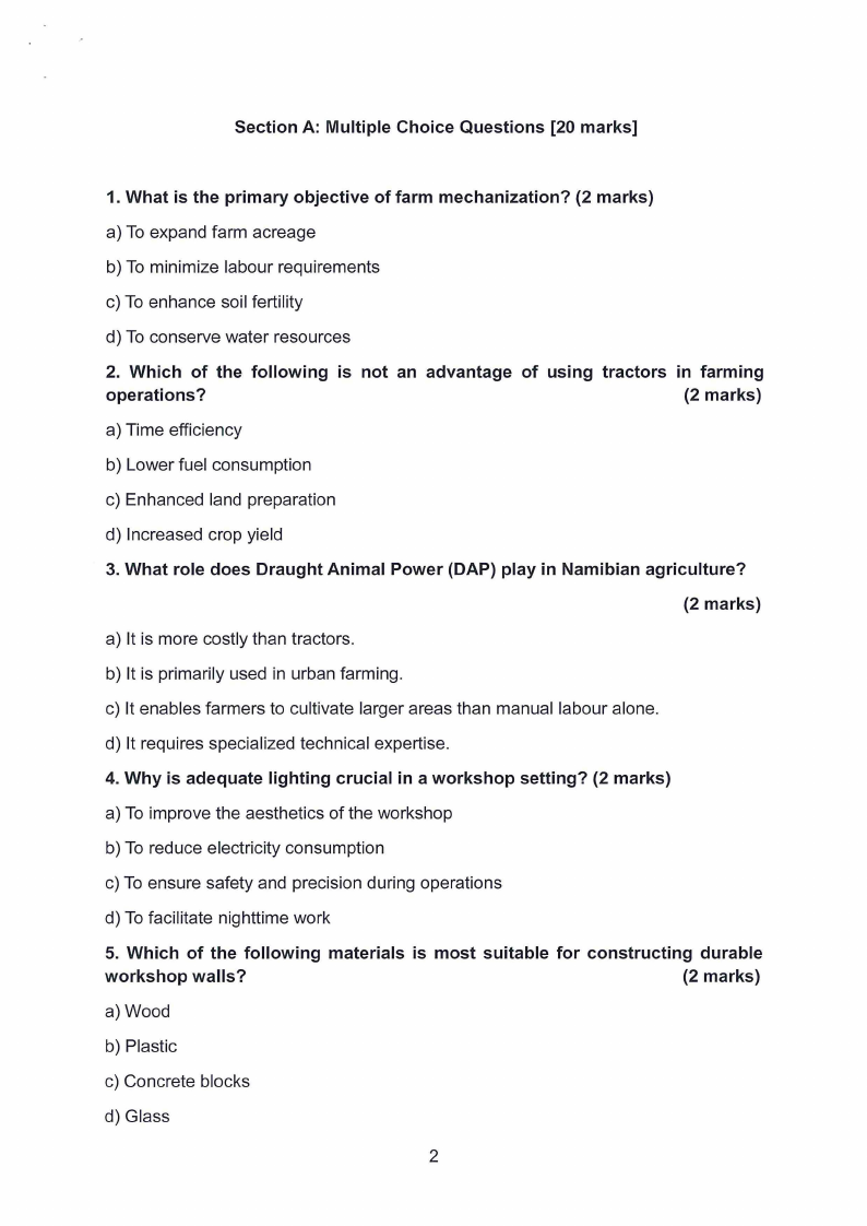 2. Discuss the role of farm mechanization in improving agricultural productivity