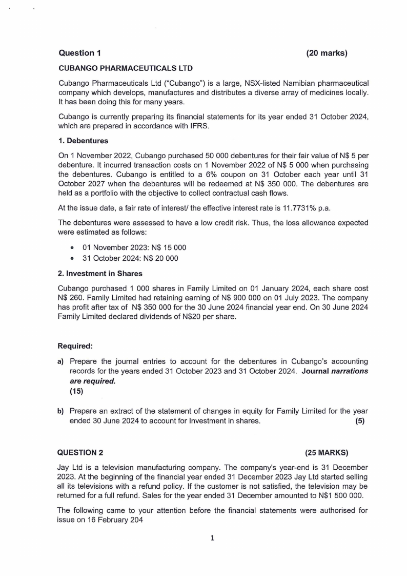 Cubango is currently preparing its financial statements for its year ended 31 October 2024,
