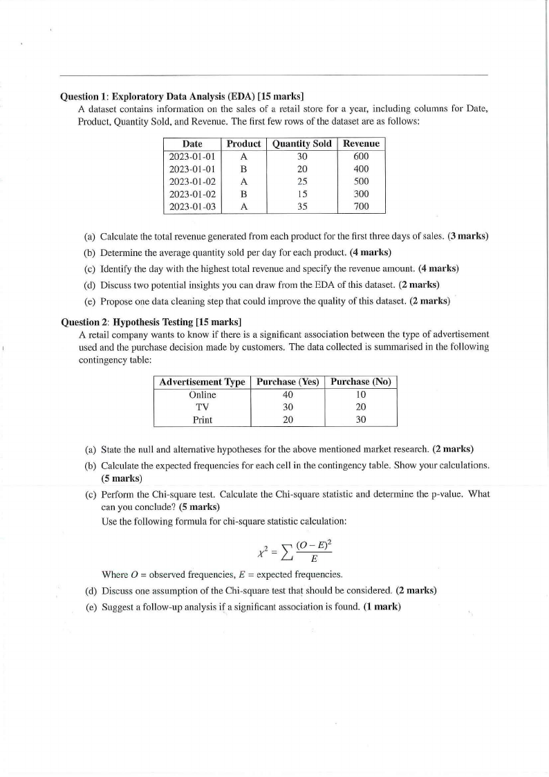 Question 2: Hypothesis Testing [15 marks]