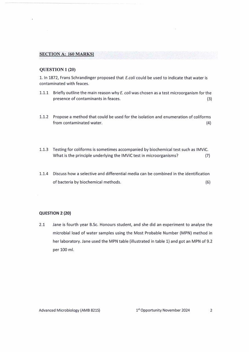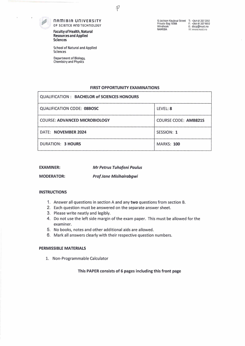 AMB821S - ADVANCED MICROBIOLOGY - 1ST OPP - NOVEMBER 2024 |