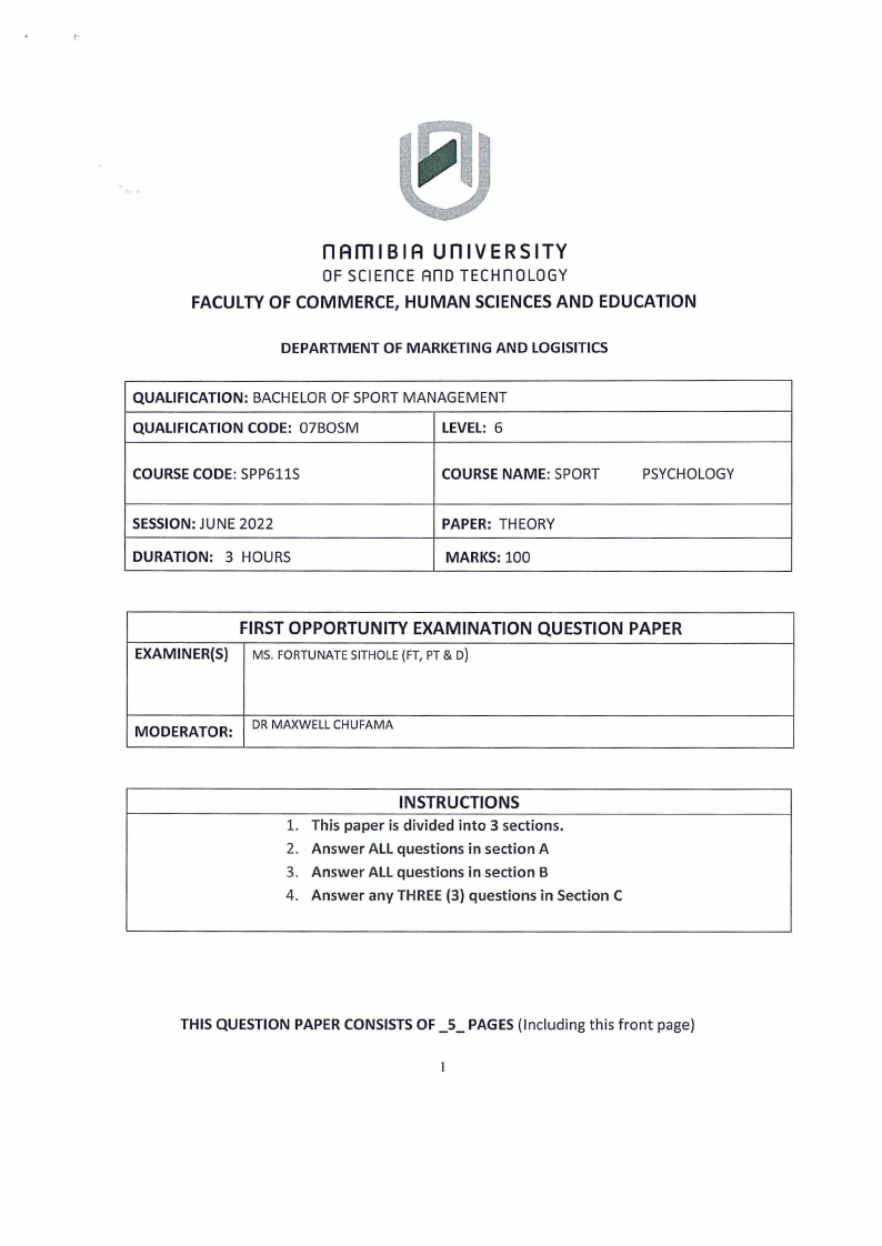 SPP611S - PSYCHOLOGY - 1ST OPP - JUNE 2022
