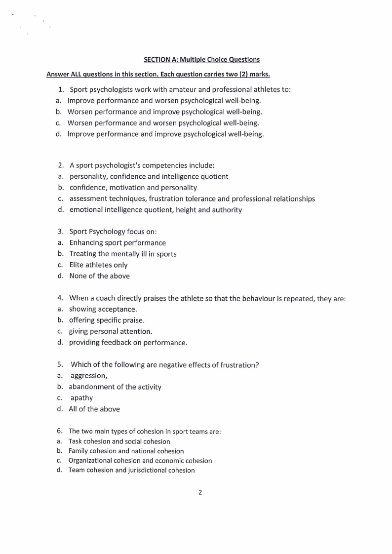 QUALIFICATION: BACHELOROF SPORTMANAGEMENT