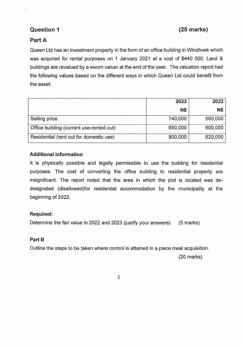 Queen Ltd has an investment property in the form of an office building in Windhoek which