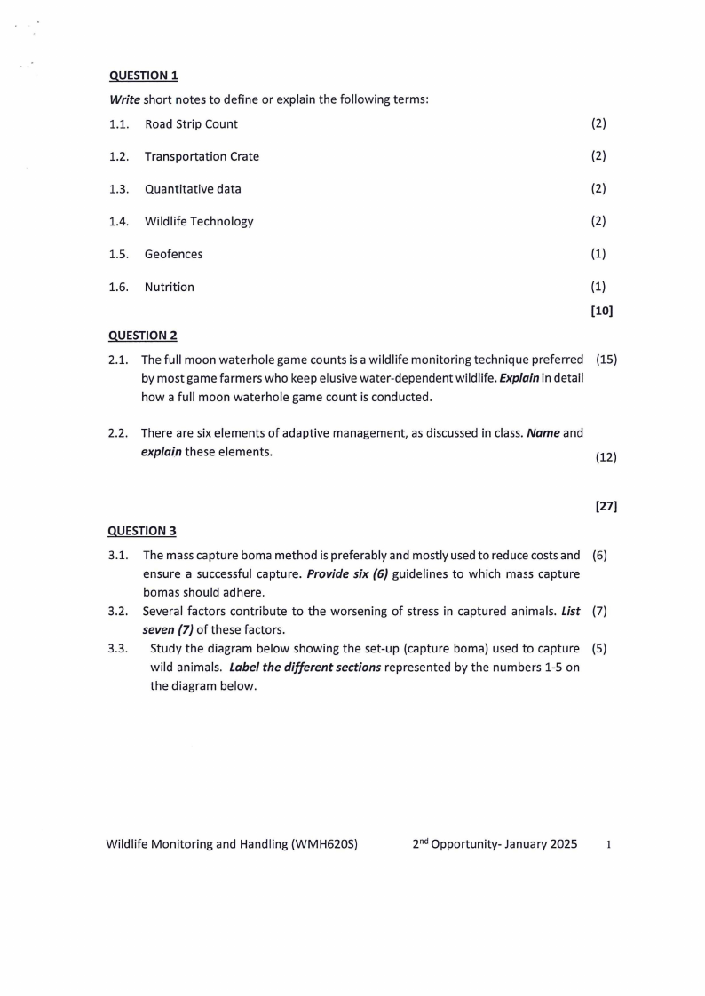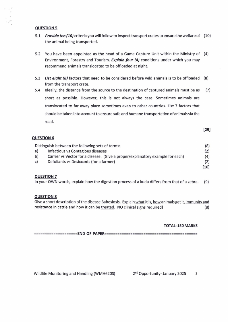 5.4 Ideally, the distance from the source to the destination of captured animals must be as (7)