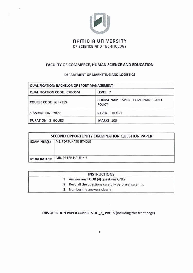 Assume you are a sport governance expert and you have been requested to educate sport