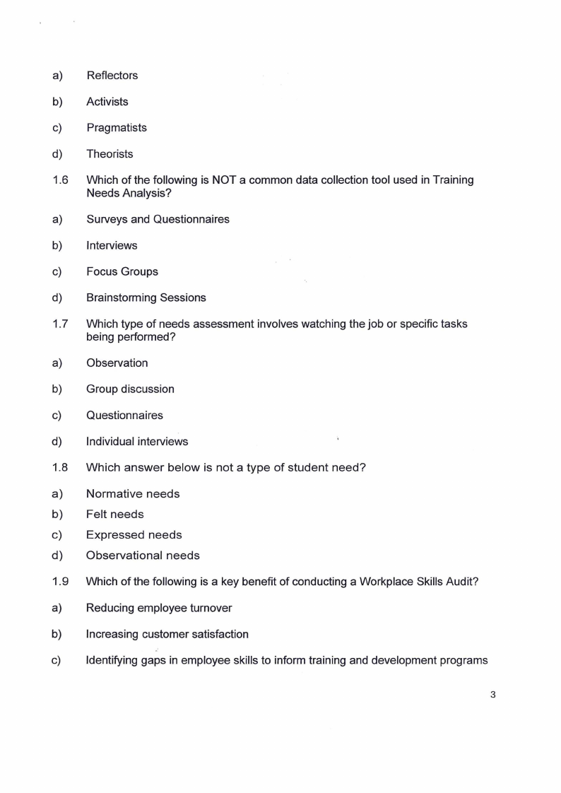 2.9 Once a Training Needs Analysis is conducted, it should not be repeated, as the