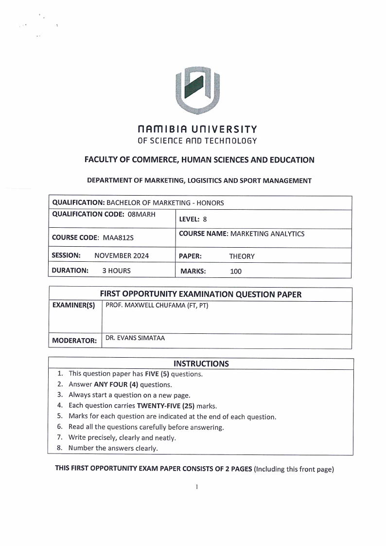 MAA812S - MARKETING ANALYTICS - 1ST OPP - NOVEMBER 2024