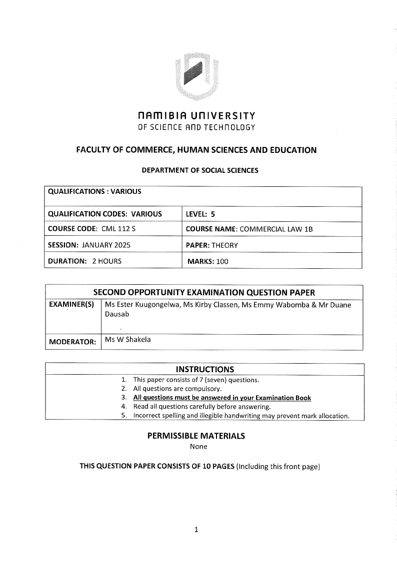 CML112S- COMMERCIAL LAW 1B - JANUARY 2025 |