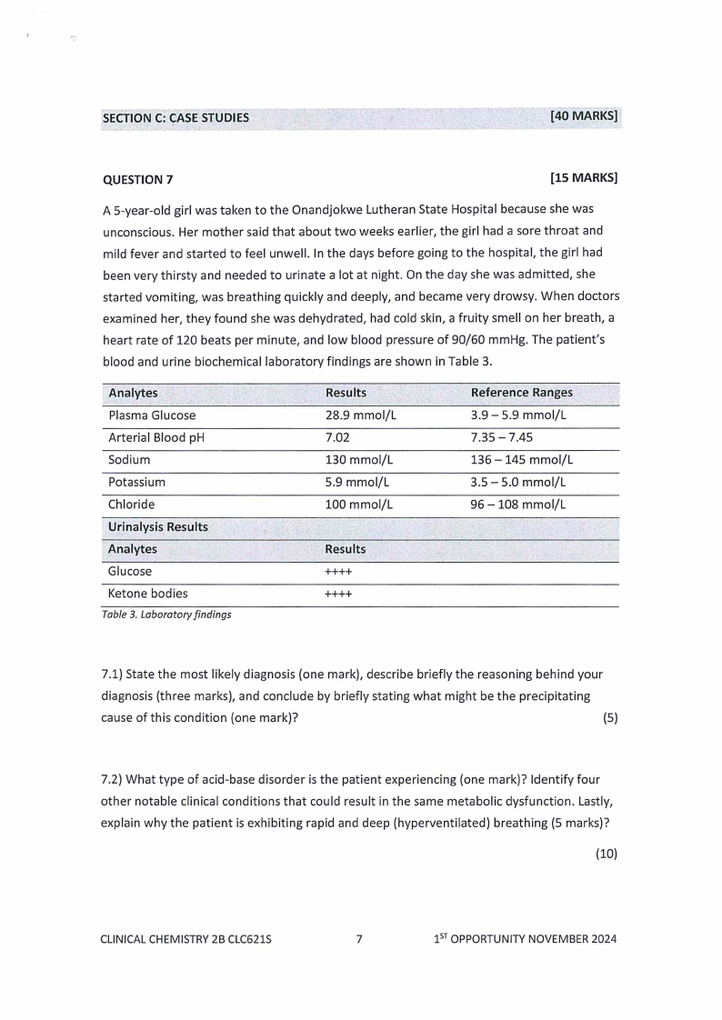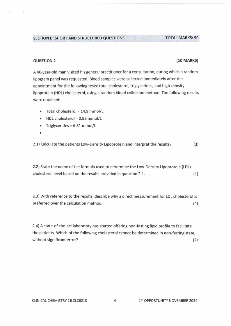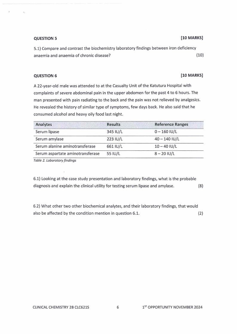 CLC621S - CLINICAL CHEMISTRY 2B - 1ST OPP - NOVEMBER 2024 |