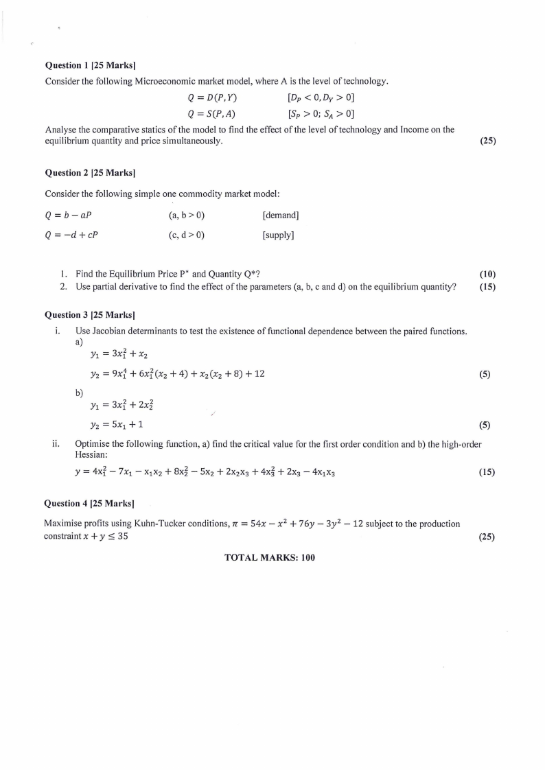 2. Use pa1tial derivative to find the effect of the parameters (a, b, c and d) on the equilibrium quantity?