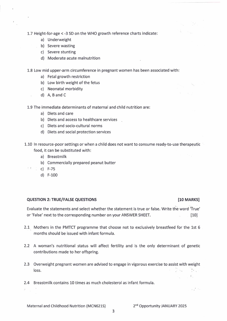 3.3 Due to the low breastfeeding rates in the country, you are tasked to write a policy on the to