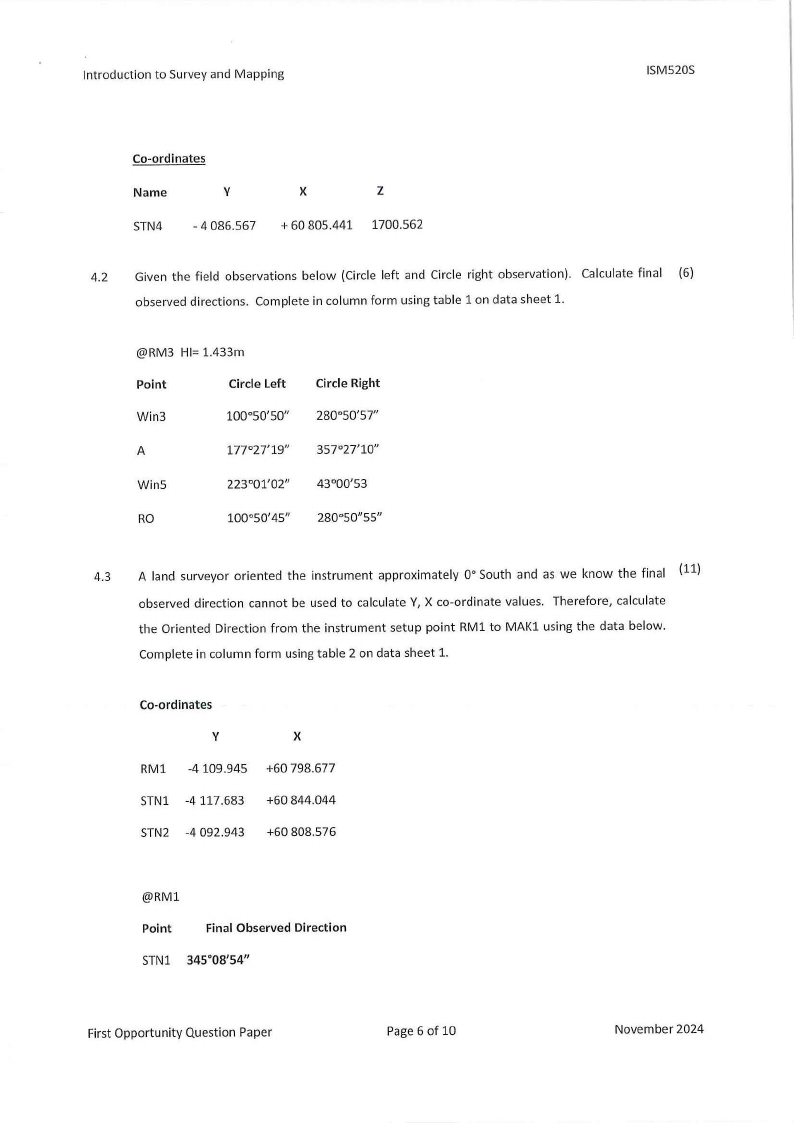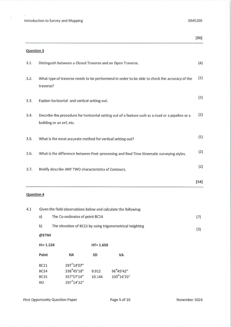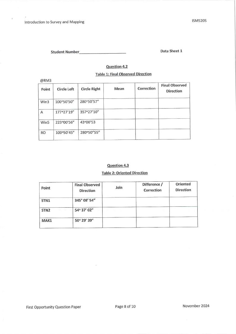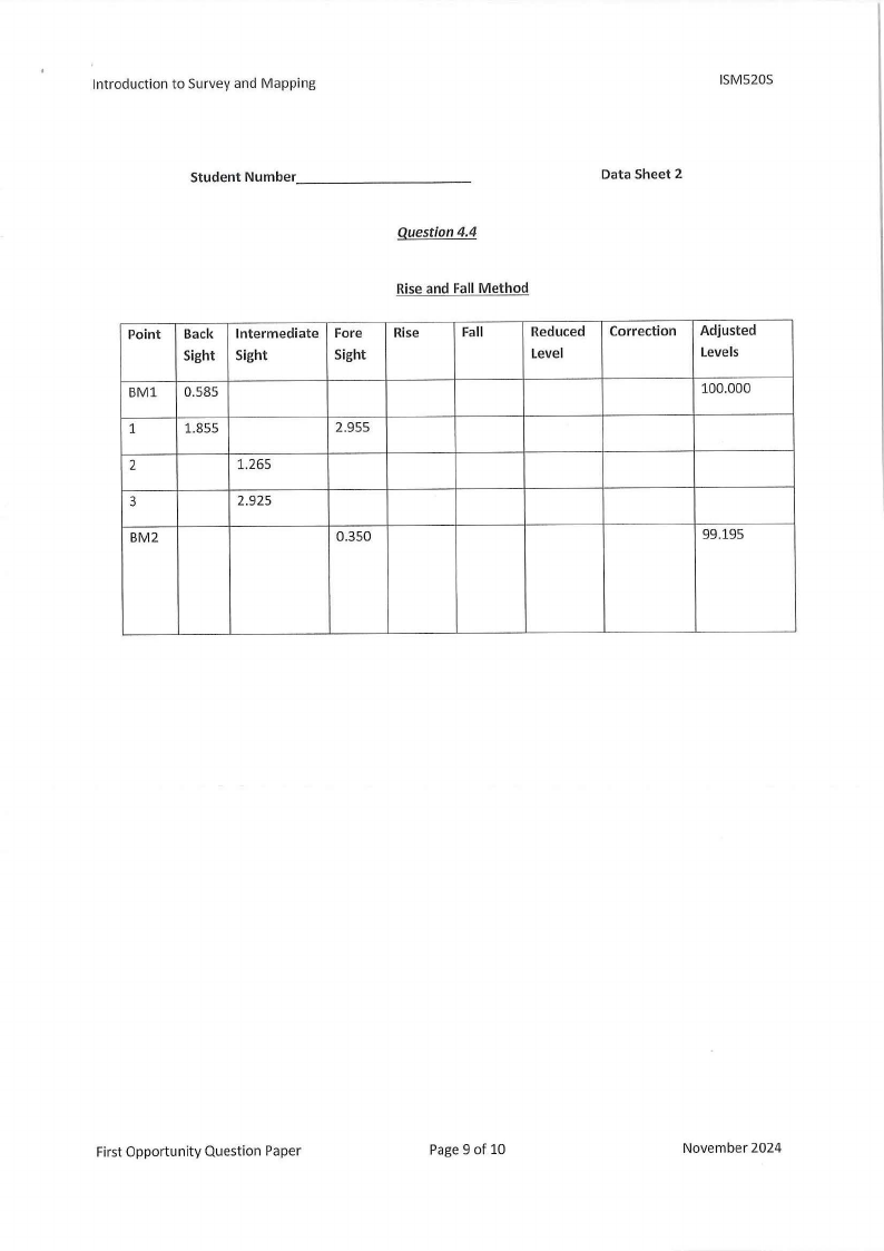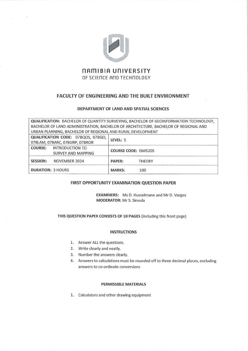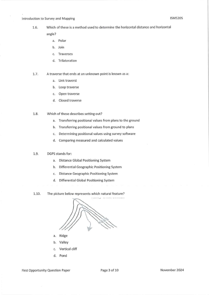 ISM520S - INTRODUCTION TO SURVEY MAPPING - 1ST OPP - NOV 2024 |